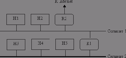 Во-вторых, можно реализовать ARP-прокси (proxy ARP) таким образом, что - бы R1 казался для хостов из сегмента 1 одновременно Н3, Н4 и Н5, а для хостов из сегмента 2 – H1, H2 и R2.